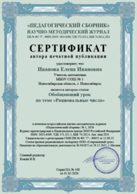- Сертификат автора печатной публикации